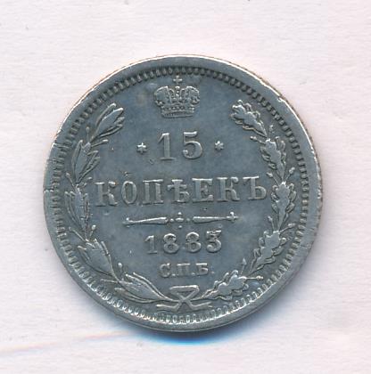 Лицевая сторона — гербовый орел, оборотная —обозначение номинала (15 копеекъ), окруженное венком из лавровой и дубовой ветвей и дата.