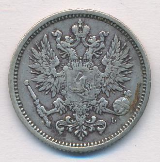 Лицевая сторона — российский двуглавый орел с гербом Великого княжества Финляндского на груди, оборотная — номинал и дата в венке из дубовых листьев. Проба — 750, нормативный вес — 2,55 грамма, гурт рубчатый.