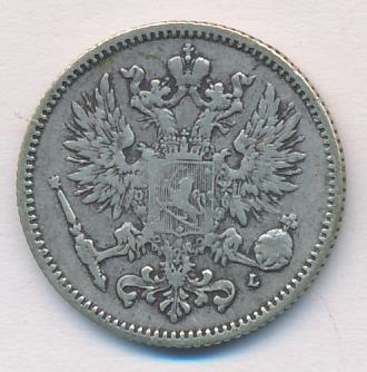 Лицевая сторона — российский двуглавый орел с гербом Великого княжества Финляндского на груди, оборотная — номинал и дата в венке из дубовых листьев. Проба — 750, нормативный вес — 2,55 грамма, гурт рубчатый.