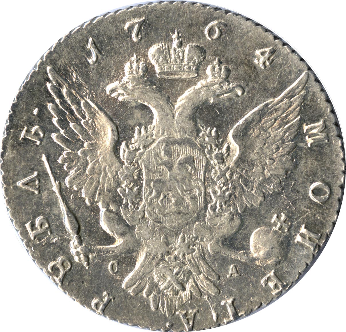 Екатерина II, отменив удвоение медной стопы, сохраняет снижение серебряной. Указом от 30 марта 1764 года вводится 72/96 проба для разменной монеты.
