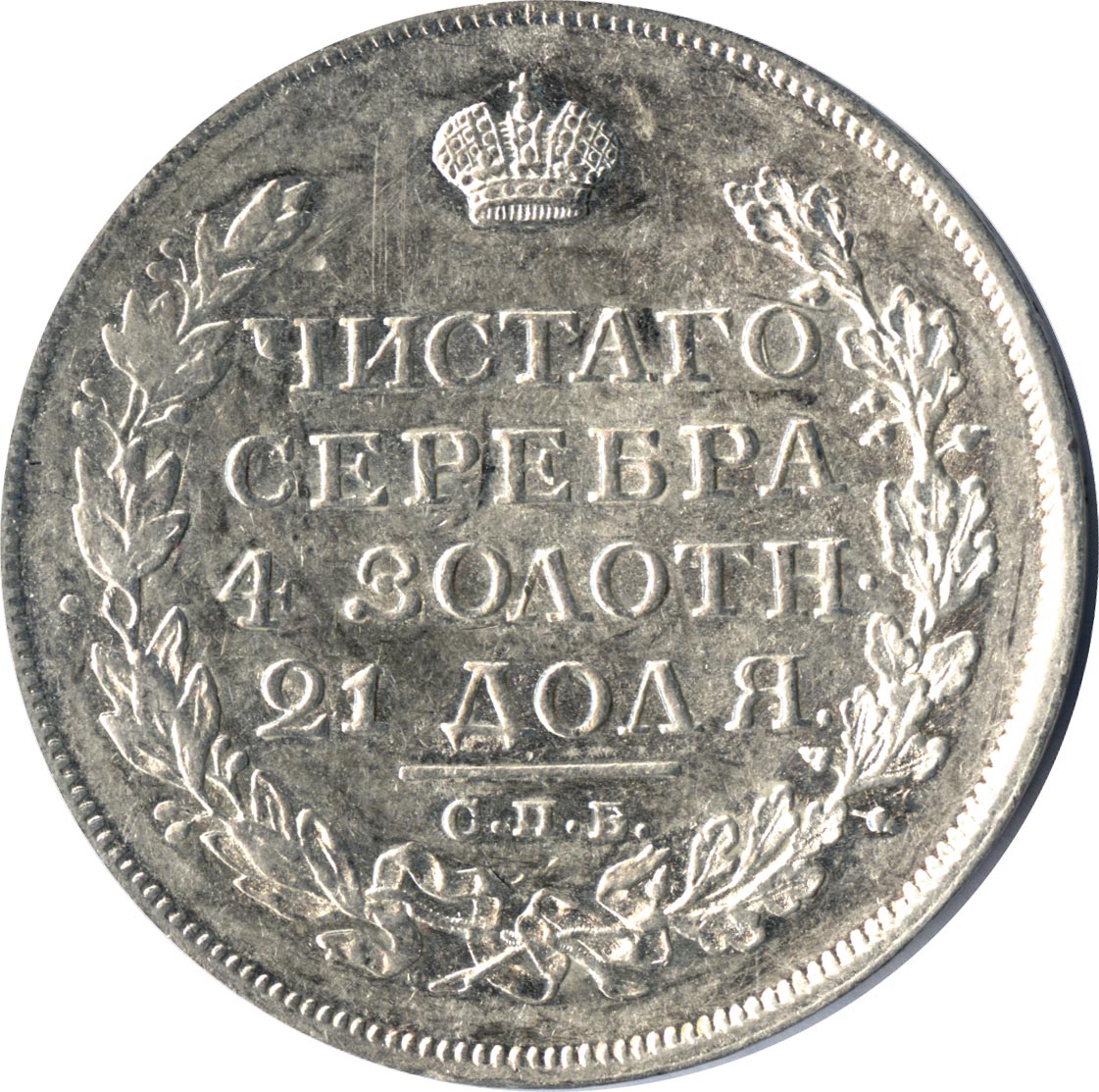 Выделяют три типа орла. Лицевая сторона - двуглавый орел, дата и надпись «МОНЕТА РУБЛЬ», оборотная — окруженная венком из лавровой и дубовой ветвей надпись «ЧИСТАГО СЕРЕБРА 4 ЗОЛОТН 21 ДОЛЯ». Проба — 868, нормативный вес — 20,73 грамма.
