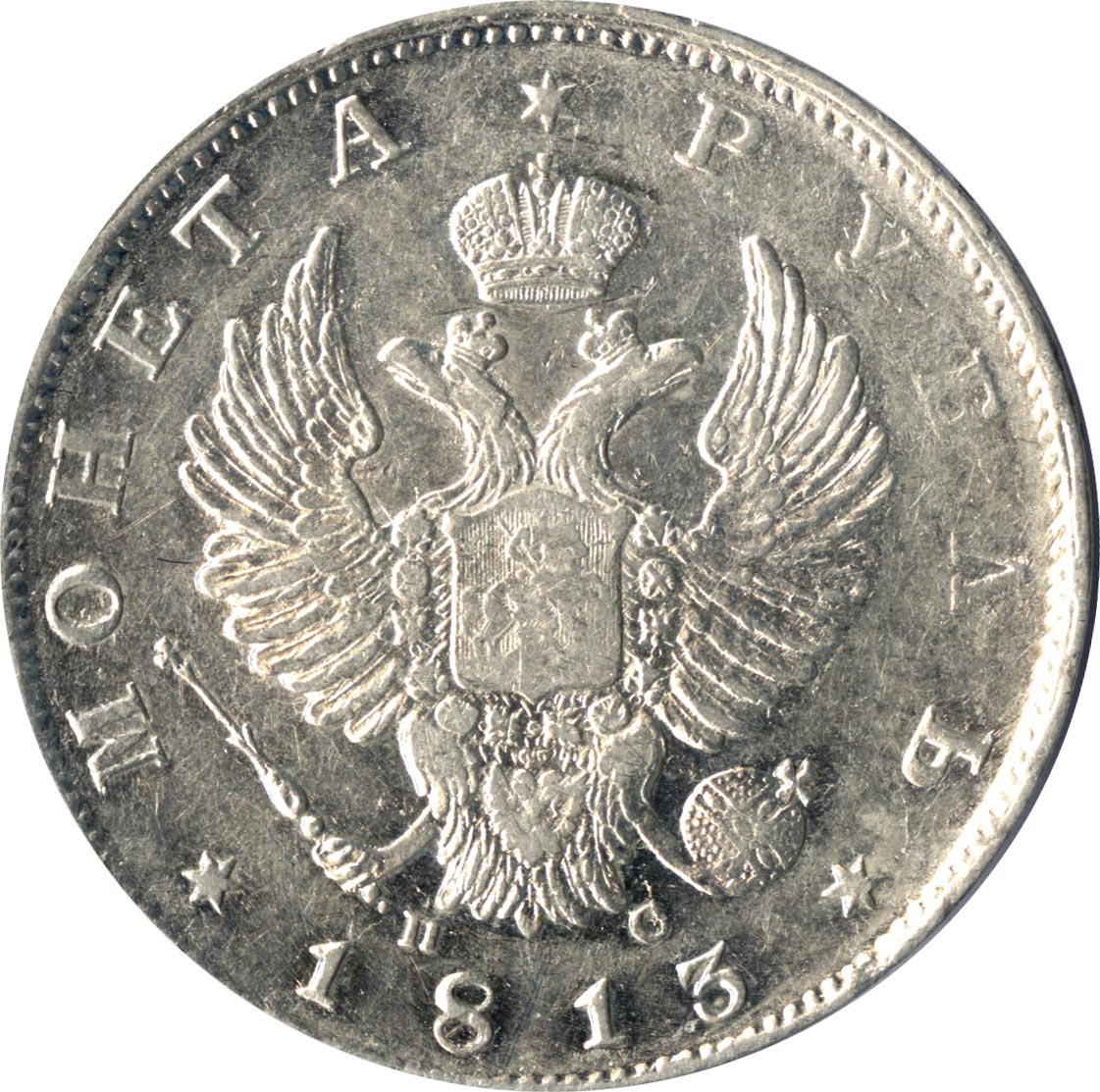 Манифест от 20 июня 1810 года «О новом устройстве монетной системы» устанавливает серебряный рубль законной мерой всех расчетов. Банковые монеты — рубли и полтины — изменяют свой внешний вид. Броская надпись внутри венка на оборотной стороне указывает содержание чистого серебра в монете, а номинал занимает скромное место вокруг орла. Гуртовая надпись сообщает о пробе и лигатурном весе.