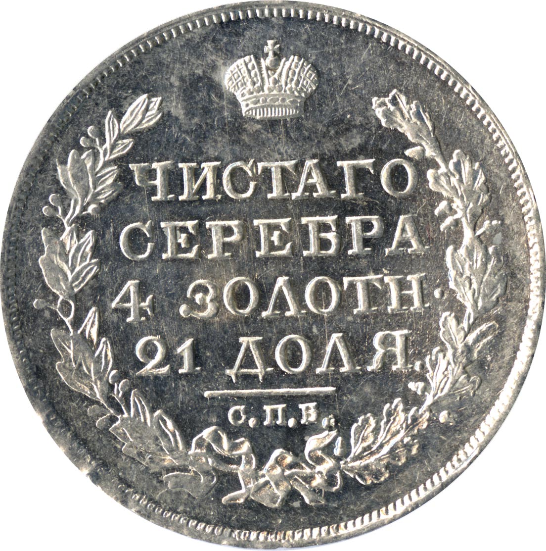 Выделяют три типа орла. Лицевая сторона - двуглавый орел, дата и надпись «МОНЕТА РУБЛЬ», оборотная — окруженная венком из лавровой и дубовой ветвей надпись «ЧИСТАГО СЕРЕБРА 4 ЗОЛОТН 21 ДОЛЯ». Проба — 868, нормативный вес — 20,73 грамма.