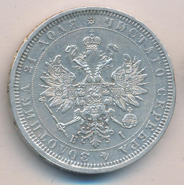 Лицевая сторона — гербовый орел и надпись «ЧИСТОГО СЕРЕБРА 4 ЗОЛОТНИКА 21 ДОЛЯ», оборотная — обозначение номинала «РУБЛЬ», окруженное венком из лавровой и дубовой ветвей и дата.