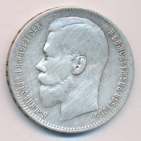 Николай II сохраняет принятый отцом тип, но на банковских монетах его портрет (работы Васютинского) повернут влево (на запад). На оборотной стороне сохраняется тот же герб, вплоть до знака АГ под задней ногой коня.
