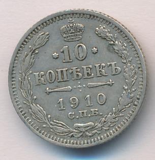 Лицевая сторона — гербовый орел, оборотная —обозначение номинала (10 копеекъ), окруженное венком из лавровой и дубовой ветвей и дата.