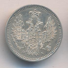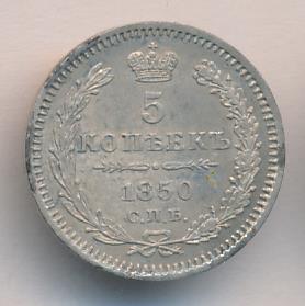 Лицевая сторона — новый гербовый орел с поднятыми крыльями, оборотная —обозначение номинала (5 копеекъ), окруженное венком из лавровой и дубовой ветвей и дата. Проба — 868, нормативный вес — 1,04 грамма.