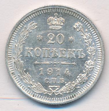 Лицевая сторона — гербовый орел, оборотная —обозначение номинала (20 копеекъ), окруженное венком из лавровой и дубовой ветвей и дата.