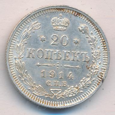Лицевая сторона — гербовый орел, оборотная —обозначение номинала (20 копеекъ), окруженное венком из лавровой и дубовой ветвей и дата.
