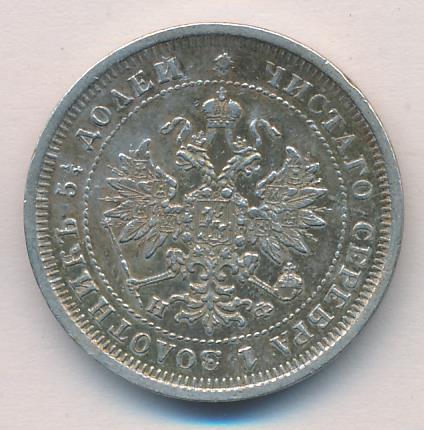 Лицевая сторона — гербовый орел и надпись «ЧИСТОГО СЕРЕБРА 1 ЗОЛОТНИКЪ 5 ДОЛЕЙ», оборотная —обозначение номинала (25 копеекъ), окруженное венком из лавровой и дубовой ветвей и дата.
