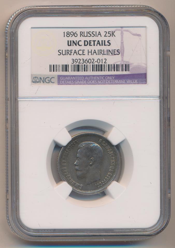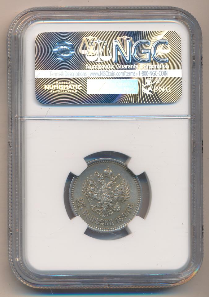 Лицевая сторона — портрет Николая II в круговой надписи «Б.М. НИКОЛАЙ II ИМПЕРАТОРЪ И САМОДЕРЖЕЦЪ ВСЕРОСС», оборотная — двуглавый орел, обозначение номинала (25 копеекъ) и дата.