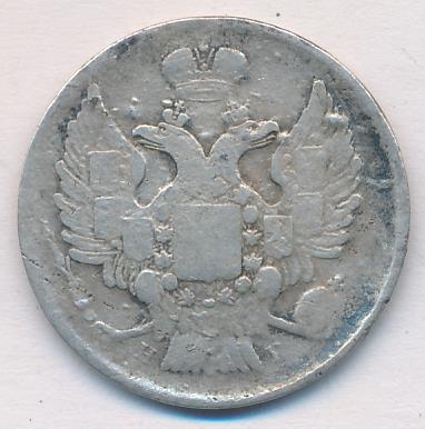 В январе 1830 года Николай I дает министру финансов Е. Ф. Канкрину устное указание «о сделании на золотых и серебряных монетах орла как на платиновых». На новом гербе крылья орла подняты, на них размещены шесть местных гербов — казанский, астраханский, сибирский, польский, херсонесский и финляндский. На груди орла — московский герб, на головах — короны. Выделяют шесть типов орла.