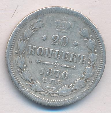 Лицевая сторона — гербовый орел, оборотная —обозначение номинала (20 копеекъ), окруженное венком из лавровой и дубовой ветвей и дата.