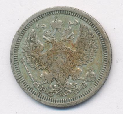 Лицевая сторона — гербовый орел, оборотная —обозначение номинала (20 копеекъ), окруженное венком из лавровой и дубовой ветвей и дата.