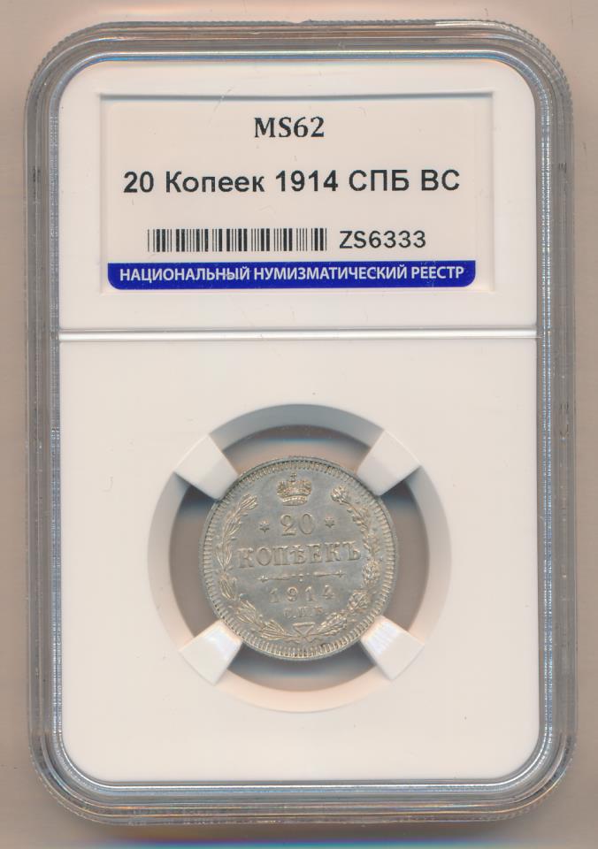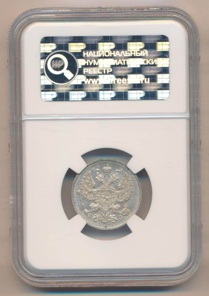 Лицевая сторона — гербовый орел, оборотная —обозначение номинала (20 копеекъ), окруженное венком из лавровой и дубовой ветвей и дата.