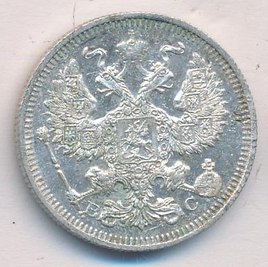 Лицевая сторона — гербовый орел, оборотная —обозначение номинала (20 копеекъ), окруженное венком из лавровой и дубовой ветвей и дата.