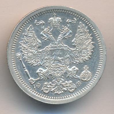 Лицевая сторона — гербовый орел, оборотная —обозначение номинала (20 копеекъ), окруженное венком из лавровой и дубовой ветвей и дата.