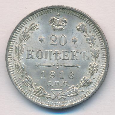 Лицевая сторона — гербовый орел, оборотная —обозначение номинала (20 копеекъ), окруженное венком из лавровой и дубовой ветвей и дата.