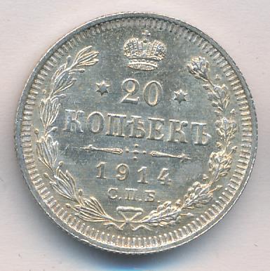 Лицевая сторона — гербовый орел, оборотная —обозначение номинала (20 копеекъ), окруженное венком из лавровой и дубовой ветвей и дата.