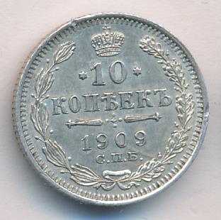 Лицевая сторона — гербовый орел, оборотная —обозначение номинала (10 копеекъ), окруженное венком из лавровой и дубовой ветвей и дата.