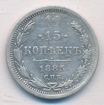 Лицевая сторона — гербовый орел, оборотная —обозначение номинала (15 копеекъ), окруженное венком из лавровой и дубовой ветвей и дата.