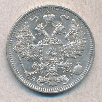 Лицевая сторона — гербовый орел, оборотная —обозначение номинала (15 копеекъ), окруженное венком из лавровой и дубовой ветвей и дата.