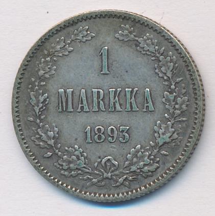Лицевая сторона — российский двуглавый орел с гербом Великого княжества Финляндского на груди в кольцевой надписи с указанием количества штук (94,48) из фунта сплава серебра, оборотная — номинал и дата в венке из дубовых листьев. Проба — 868, нормативный вес — 5,18 грамма, гурт рубчатый.