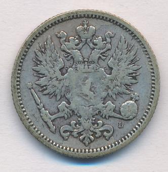 Лицевая сторона — российский двуглавый орел с гербом Великого княжества Финляндского на груди, оборотная — номинал и дата в венке из дубовых листьев. Проба — 750, нормативный вес — 2,55 грамма, гурт рубчатый.