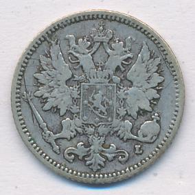 Лицевая сторона — российский двуглавый орел с гербом Великого княжества Финляндского на груди, оборотная — номинал и дата в венке из дубовых листьев. Проба — 750, нормативный вес — 1,27 грамма, гурт рубчатый.