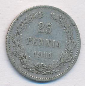 Лицевая сторона — российский двуглавый орел с гербом Великого княжества Финляндского на груди, оборотная — номинал и дата в венке из дубовых листьев. Проба — 750, нормативный вес — 1,27 грамма, гурт рубчатый.