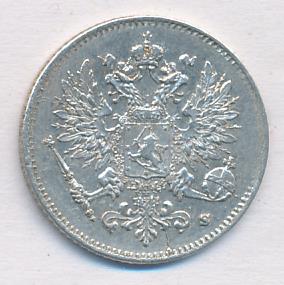 Лицевая сторона — российский двуглавый орел с гербом Великого княжества Финляндского на груди, оборотная — номинал и дата в венке из дубовых листьев. Проба — 750, нормативный вес — 1,27 грамма, гурт рубчатый.