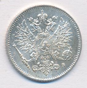 Лицевая сторона — российский двуглавый орел с гербом Великого княжества Финляндского на груди, оборотная — номинал и дата в венке из дубовых листьев. Проба — 750, нормативный вес — 1,27 грамма, гурт рубчатый.