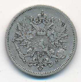 Лицевая сторона — российский двуглавый орел с гербом Великого княжества Финляндского на груди, оборотная — номинал и дата в венке из дубовых листьев. Проба — 750, нормативный вес — 1,27 грамма, гурт рубчатый.