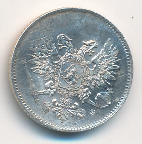 Лицевая сторона — российский двуглавый орел с гербом Великого княжества Финляндского на груди, оборотная — номинал и дата в венке из дубовых листьев. Проба — 750, нормативный вес — 1,27 грамма, гурт рубчатый.
