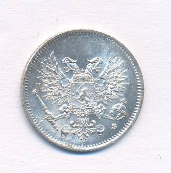 Лицевая сторона — российский двуглавый орел с гербом Великого княжества Финляндского на груди, оборотная — номинал и дата в венке из дубовых листьев. Проба — 750, нормативный вес — 1,27 грамма, гурт рубчатый.