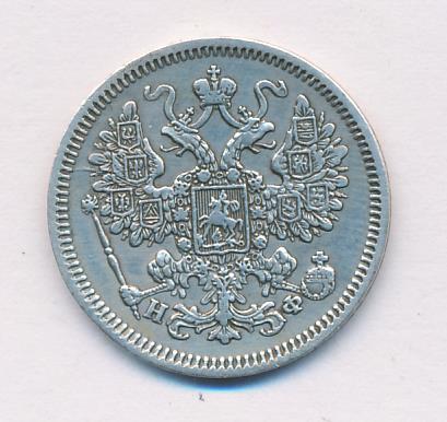 Лицевая сторона — гербовый орел, оборотная —обозначение номинала (15 копеекъ), окруженное венком из лавровой и дубовой ветвей и дата.