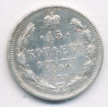 Лицевая сторона — гербовый орел, оборотная —обозначение номинала (15 копеекъ), окруженное венком из лавровой и дубовой ветвей и дата.