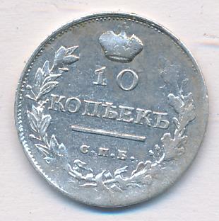 Лицевая сторона - двуглавый орел и дата, оборотная — обозначение номинала (10 копеекъ) в венке из лавровой и дубовой ветвей. Проба до 1813 года — 750, нормативный вес — 2,40 грамма; после 1813 года — проба 868, нормативный вес — 2,07 грамма.