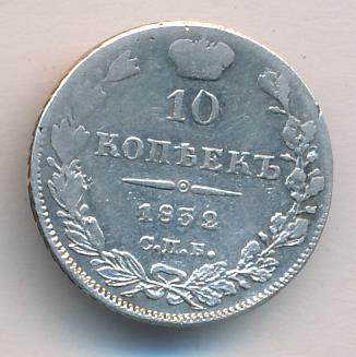 Лицевая сторона — новый гербовый орел с поднятыми крыльями, оборотная —обозначение номинала (10 копеекъ), окруженное венком из лавровой и дубовой ветвей и дата. Проба — 868, нормативный вес — 2,07 грамма.