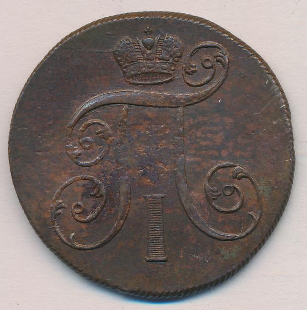 Лицевая сторона — вензель Павла I под короной, оборотная — номинал (2 копейки) и дата. Нормативный вес — 20,48 грамма, гурт — шнур.