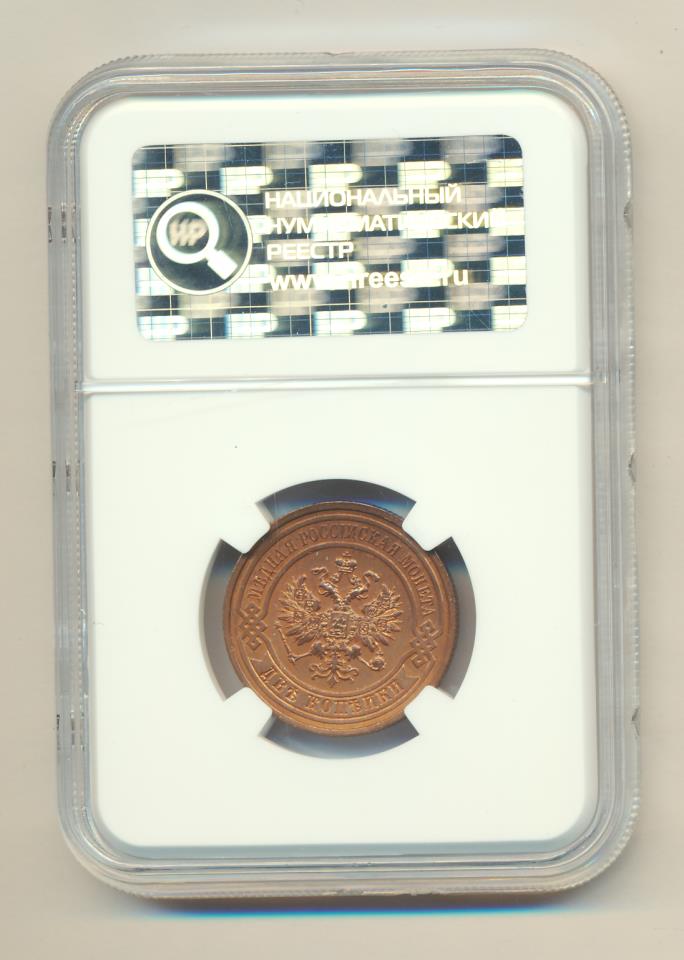 Лицевая сторона — двуглавый орел, надпись МЕДНАЯ РОССIЙСКАЯ МОНЕТА и обозначение номинала (две копейки); оборотная — обозначение номинала (2 копейки) в бусовом ободке и дата. Нормативный вес — 6,55 грамма, гурт рубчатый.