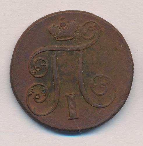 Лицевая сторона — вензель Павла I под короной, оборотная — номинал (1 копейка) и дата. Нормативный вес — 10,24 грамма, гурт — шнур.