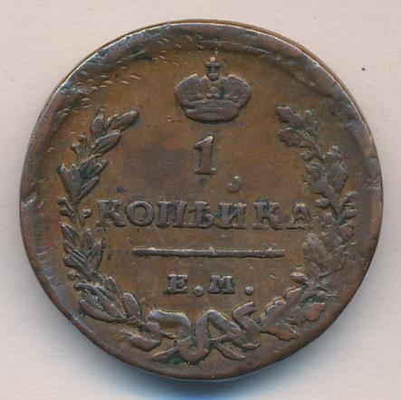 Лицевая сторона — двуглавый орел и дата; оборотная - номинал (1 копейка) в венке из лавровой и дубовой ветвей. Нормативный вес — 6,83 грамма, гурт — гладкий или шнур.