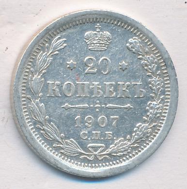 Лицевая сторона — гербовый орел, оборотная —обозначение номинала (20 копеекъ), окруженное венком из лавровой и дубовой ветвей и дата.