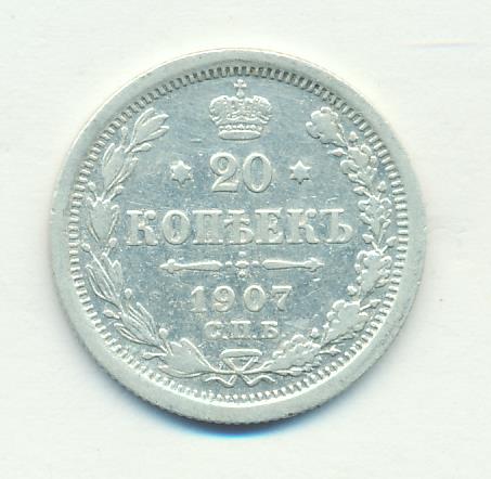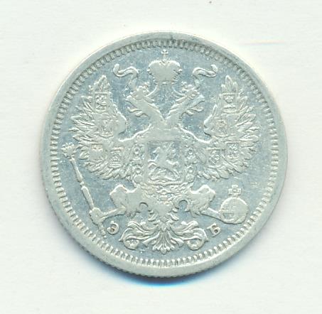 Лицевая сторона — гербовый орел, оборотная —обозначение номинала (20 копеекъ), окруженное венком из лавровой и дубовой ветвей и дата.