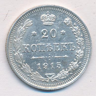 Лицевая сторона — гербовый орел, оборотная —обозначение номинала (20 копеекъ), окруженное венком из лавровой и дубовой ветвей и дата.