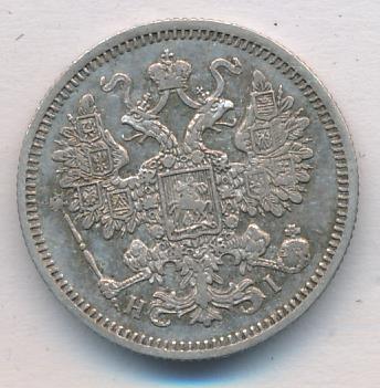 Лицевая сторона — гербовый орел, оборотная —обозначение номинала (15 копеекъ), окруженное венком из лавровой и дубовой ветвей и дата.