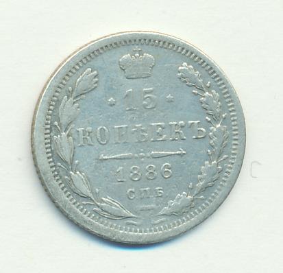 Лицевая сторона — гербовый орел, оборотная —обозначение номинала (15 копеекъ), окруженное венком из лавровой и дубовой ветвей и дата.