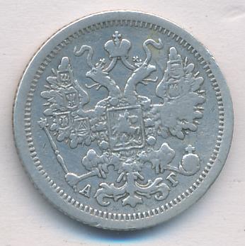 Лицевая сторона — гербовый орел, оборотная —обозначение номинала (15 копеекъ), окруженное венком из лавровой и дубовой ветвей и дата.