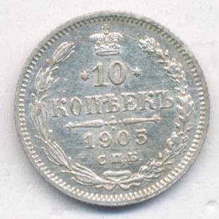 Лицевая сторона — гербовый орел, оборотная —обозначение номинала (10 копеекъ), окруженное венком из лавровой и дубовой ветвей и дата.